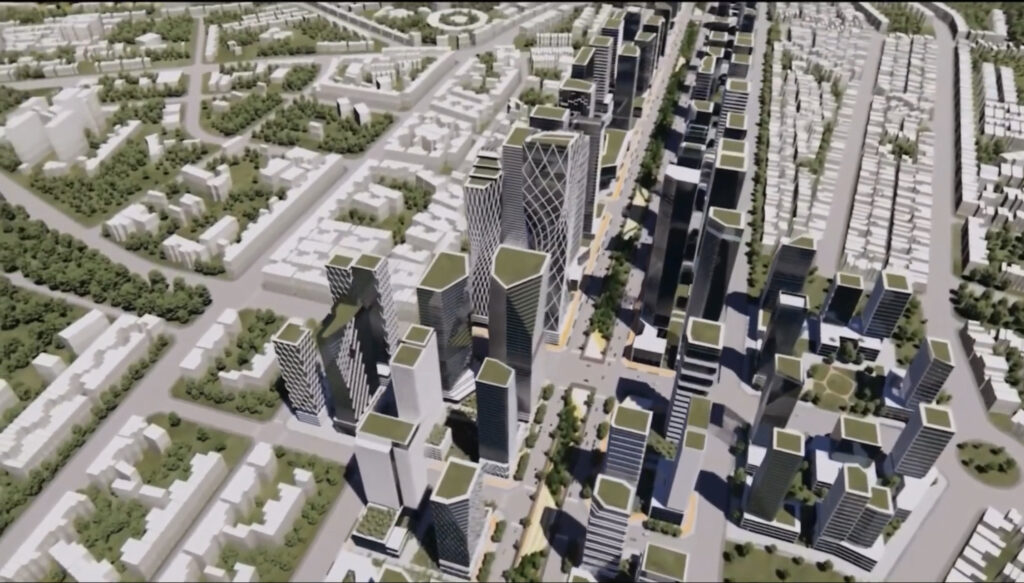 Hình ảnh mô phỏng khu vực sân bay cũ quy hoạch thành trung tâm tài chính, thương mại.